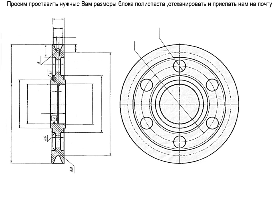 Мы можем изготовить канатные блоки из любого металла и размера согласно Вашим предоставленным чертежам и ОСТ 24.091.05-82. Если у Вас нет чертежа, вы можете скачать и заполнить опросной лист на блок полиспаста, обводной блок который расположен снизу.