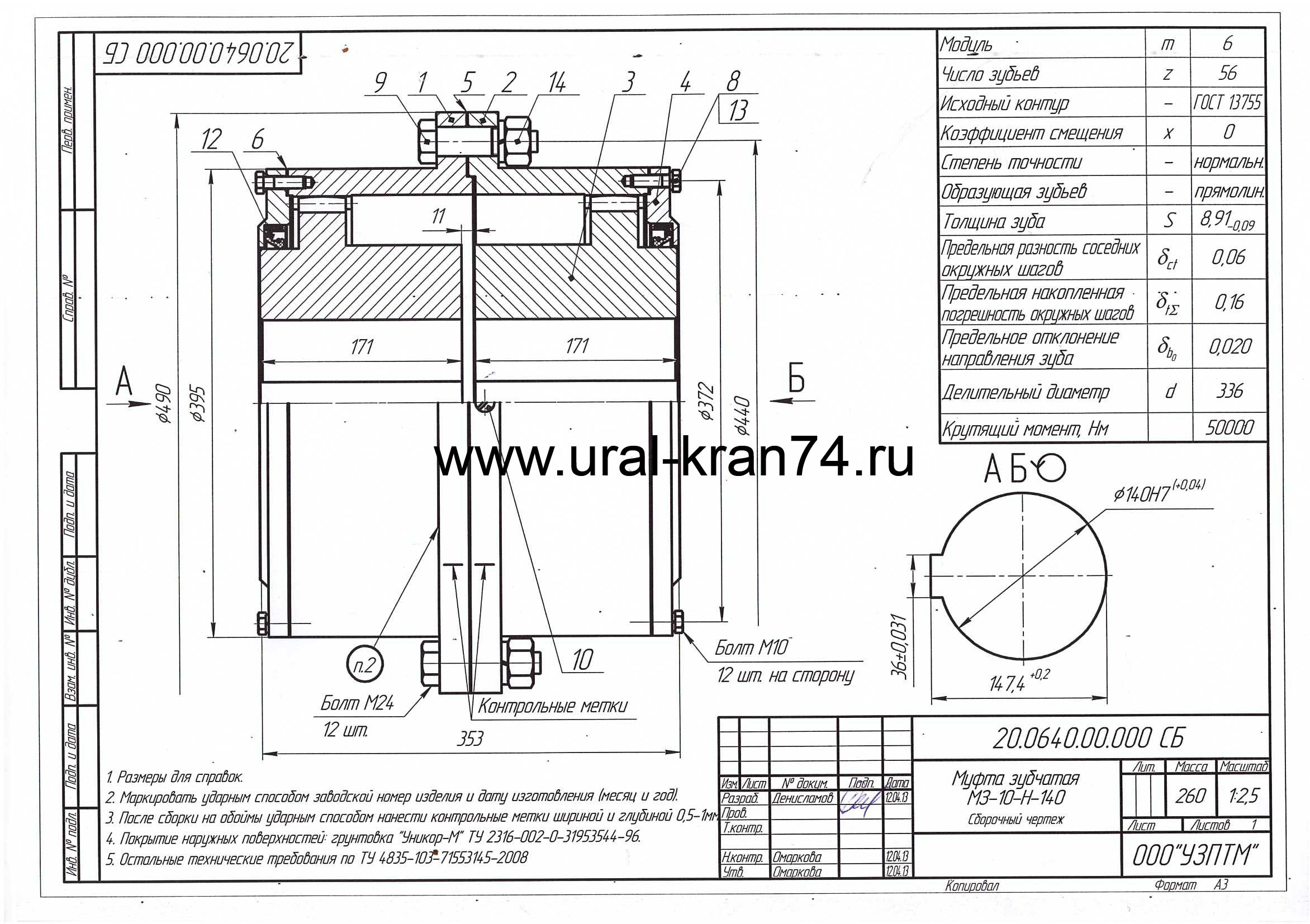 Зубчатая муфта поставляется с не расточенными отверстиями, в соответствии с ГОСТ 5006-55 и ГОСТ 5006–83, с индивидуальным паспортом на каждую единицу изделия.